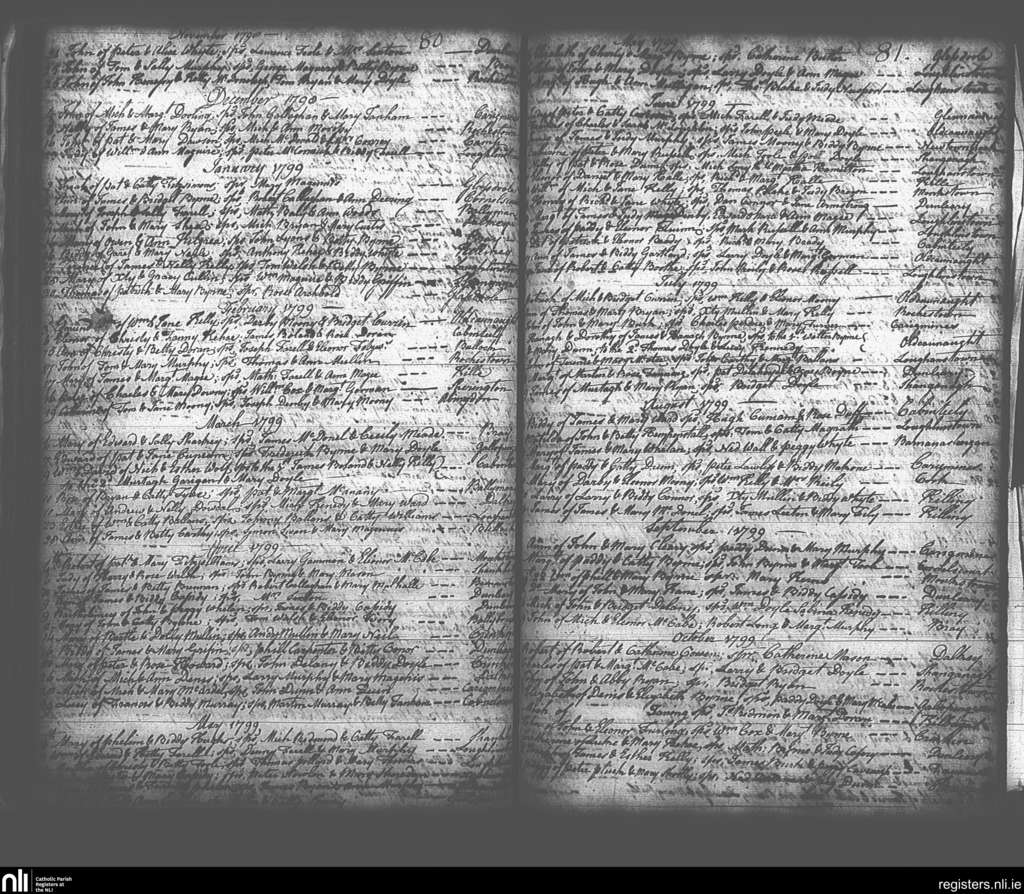 Kingstown; County of Dublin; Archdiocese of Dublin. Baptisms, Nov. 1798 to Oct. 1799