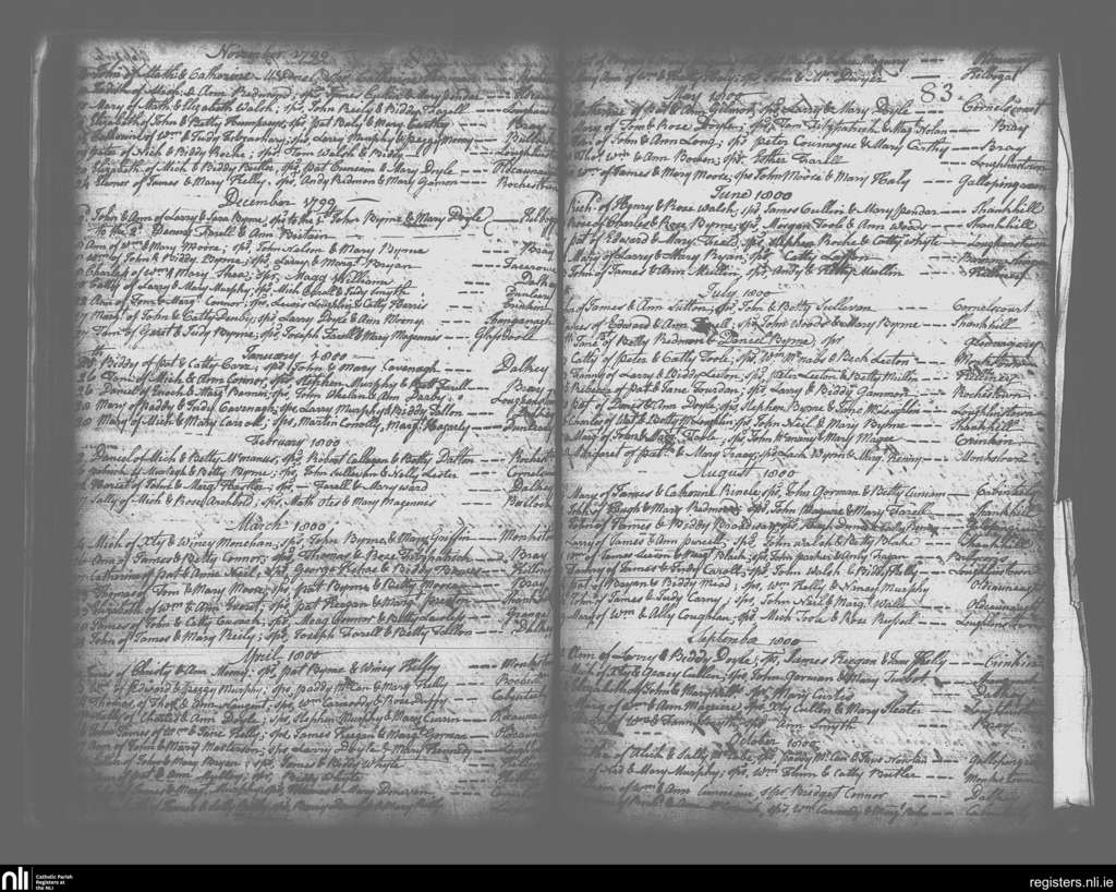 Kingstown; County of Dublin; Archdiocese of Dublin. Baptisms, Nov. 1799 to Oct. 1800