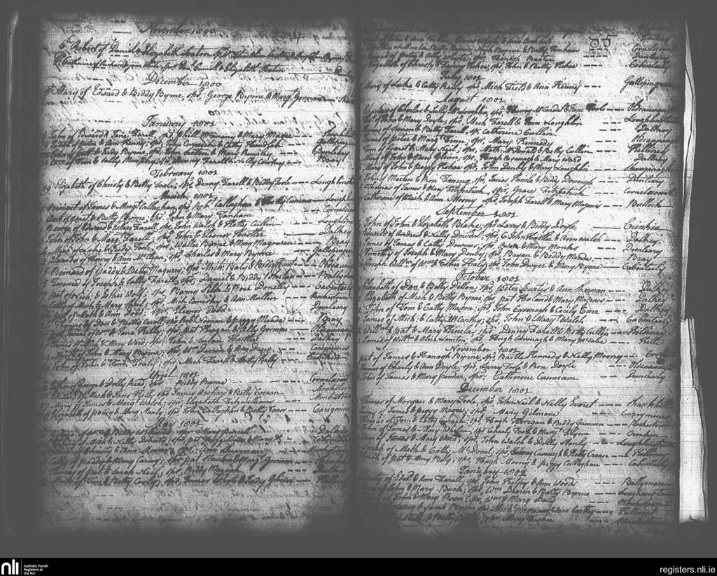 Kingstown; County of Dublin; Archdiocese of Dublin. Baptisms, Nov. 1800 to Jan. 1802