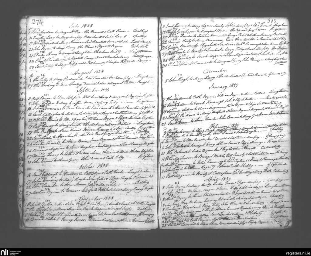 Kingstown; County of Dublin; Archdiocese of Dublin. Marriages, July 1838 to Apr. 1839