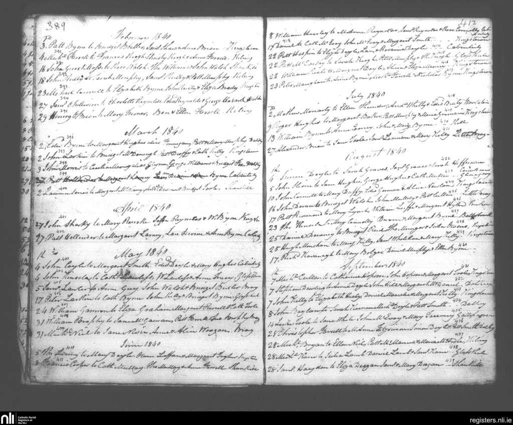 Kingstown; County of Dublin; Archdiocese of Dublin. Marriages, Feb. 1840 to Sep. 1840