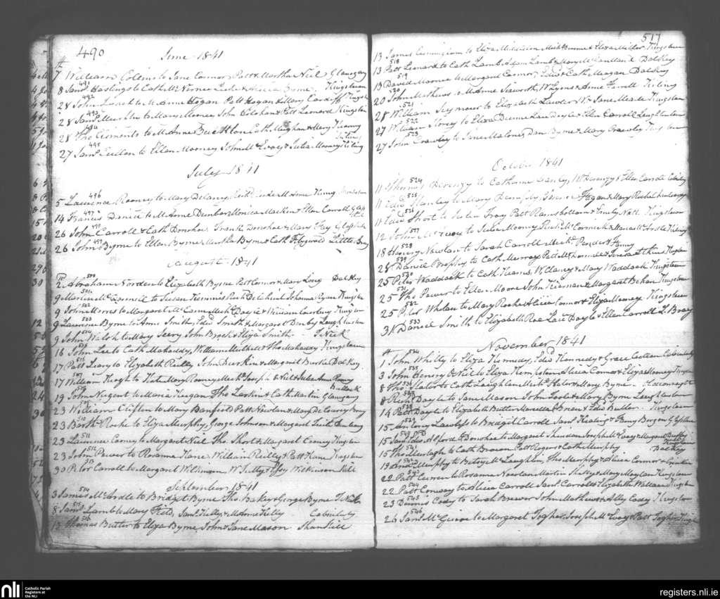 Kingstown; County of Dublin; Archdiocese of Dublin. Marriages, June 1841 to Nov. 1841