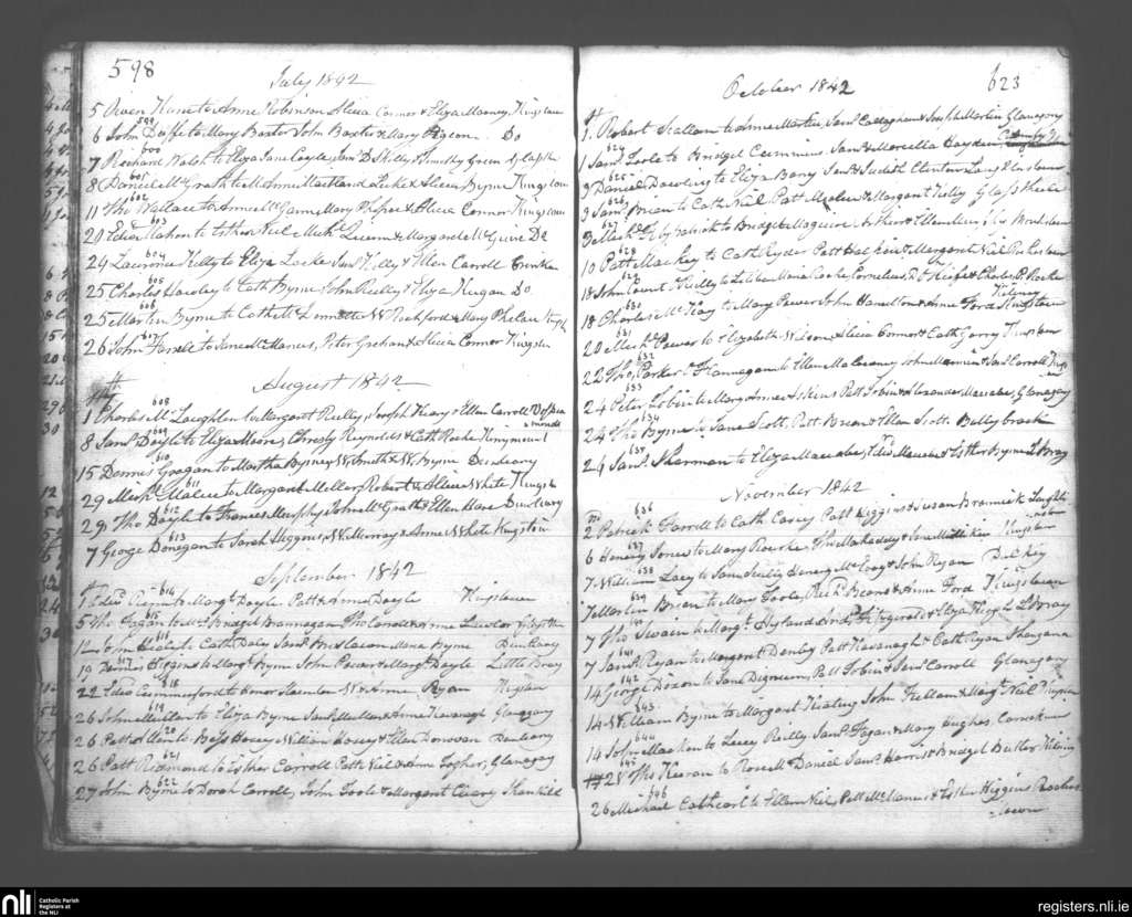 Kingstown; County of Dublin; Archdiocese of Dublin. Marriages, July 1842 to Nov. 1842