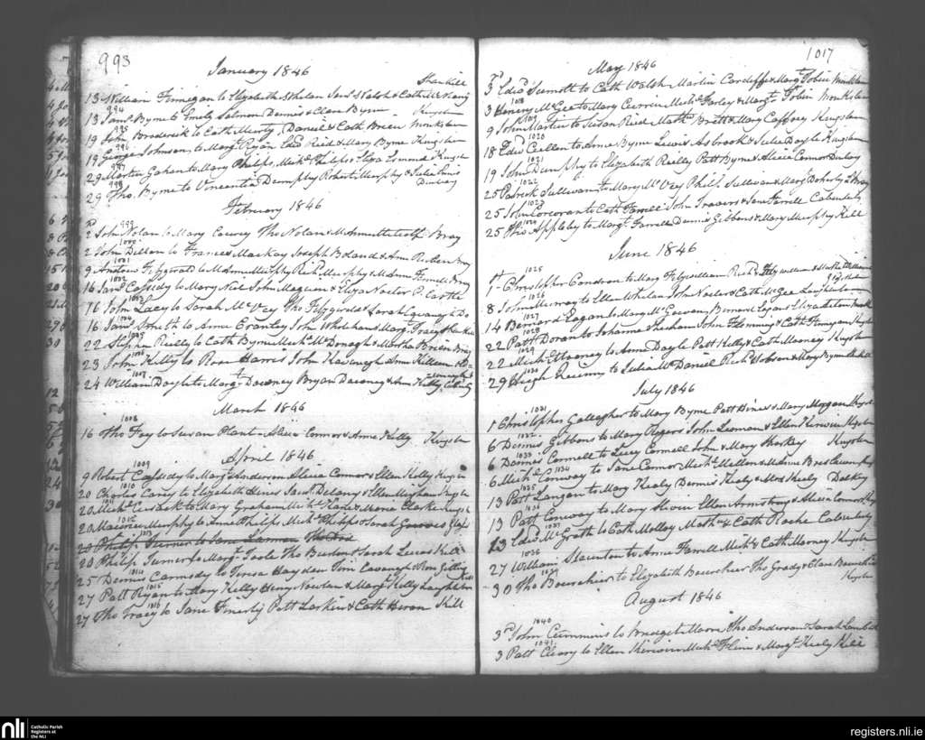 Kingstown; County of Dublin; Archdiocese of Dublin. Marriages, Jan. 1846 to Aug. 1846