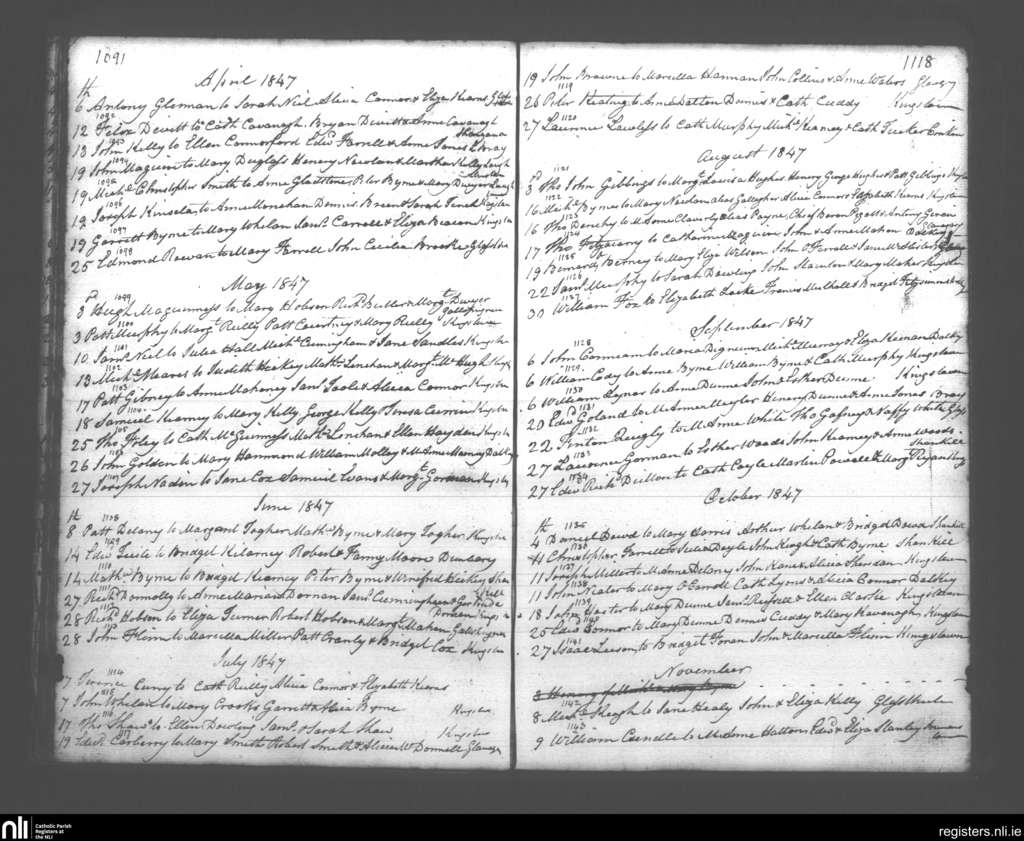 Kingstown; County of Dublin; Archdiocese of Dublin. Marriages, Apr. 1847 to Nov. 1847