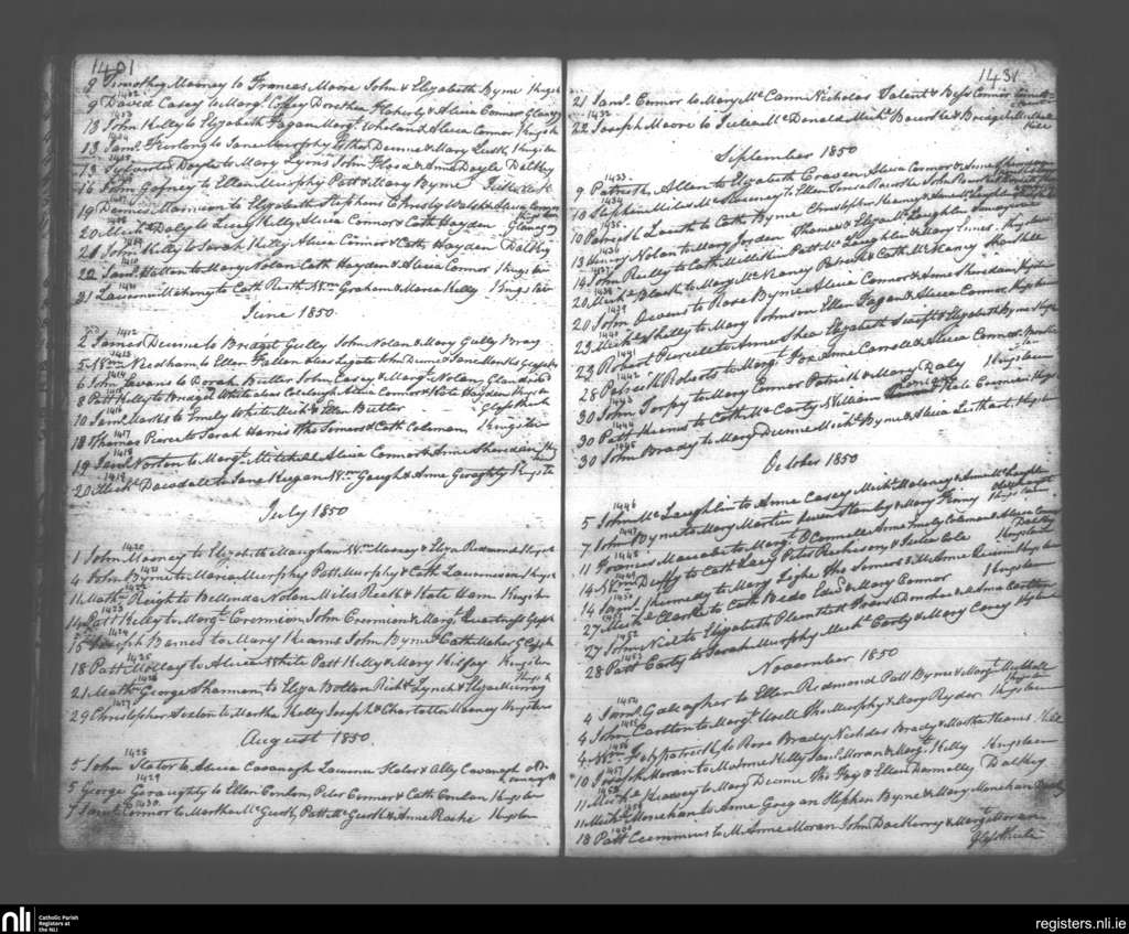 Kingstown; County of Dublin; Archdiocese of Dublin. Marriages, May 1850 to Nov. 1850
