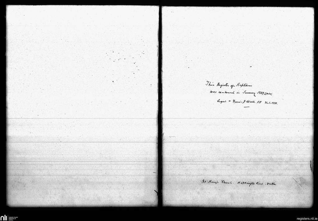 Haddington Road; County of Dublin; Archdiocese of Dublin. Baptisms