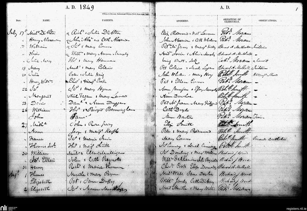 Haddington Road; County of Dublin; Archdiocese of Dublin. Baptisms, July 1849 to Aug. 1849