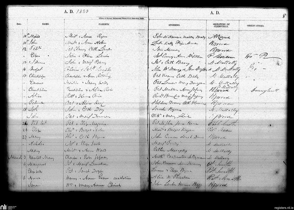 Haddington Road; County of Dublin; Archdiocese of Dublin. Baptisms, Feb. 1850 to Mar. 1850