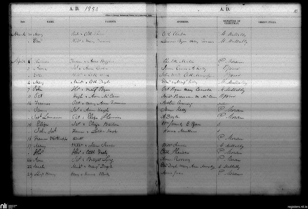 Haddington Road; County of Dublin; Archdiocese of Dublin. Baptisms, Mar. 1850 to Apr. 1850