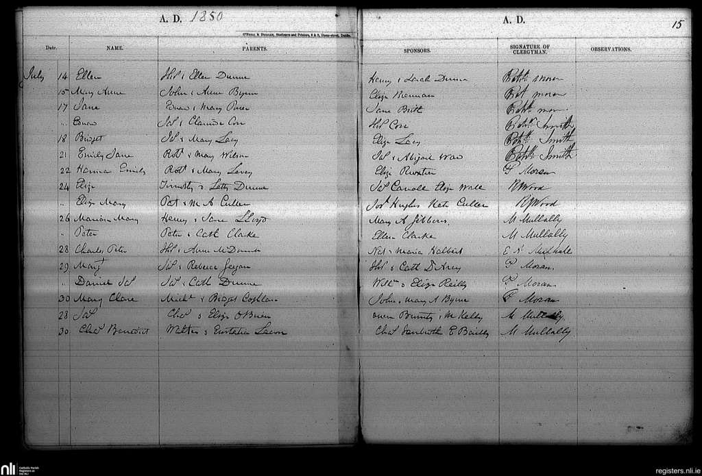 Haddington Road; County of Dublin; Archdiocese of Dublin. Baptisms, July 1850