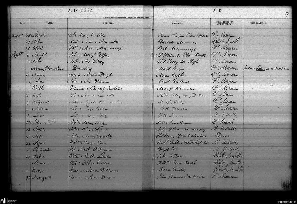 Haddington Road; County of Dublin; Archdiocese of Dublin. Baptisms, Aug. 1850 to Sep. 1850