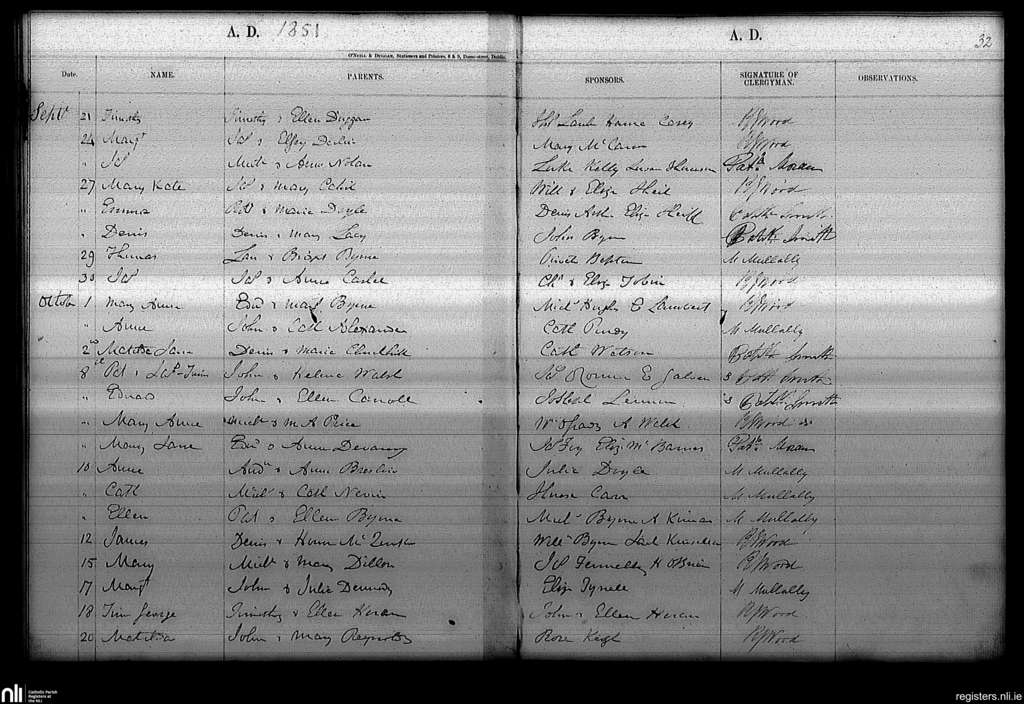 Haddington Road; County of Dublin; Archdiocese of Dublin. Baptisms, Sep. 1851 to Oct. 1851
