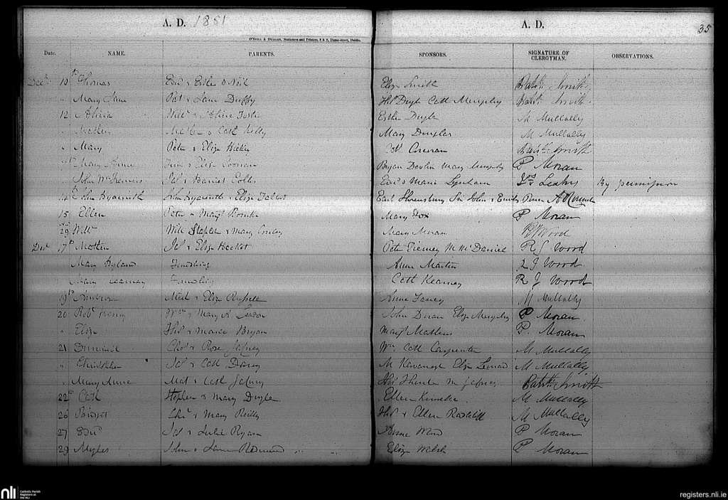 Haddington Road; County of Dublin; Archdiocese of Dublin. Baptisms, Dec. 1851