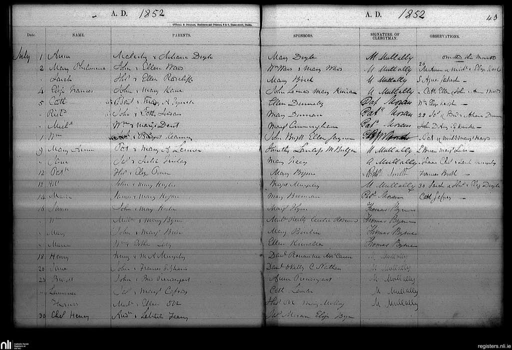 Haddington Road; County of Dublin; Archdiocese of Dublin. Baptisms, July 1852