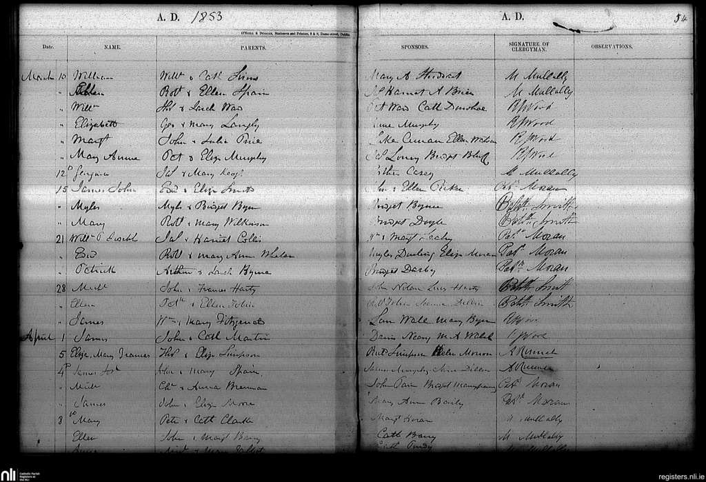 Haddington Road; County of Dublin; Archdiocese of Dublin. Baptisms, Mar. 1853 to Apr. 1853