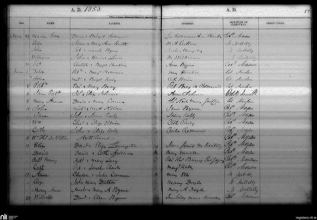 Haddington Road; County of Dublin; Archdiocese of Dublin. Baptisms, May 1853 to June 1853