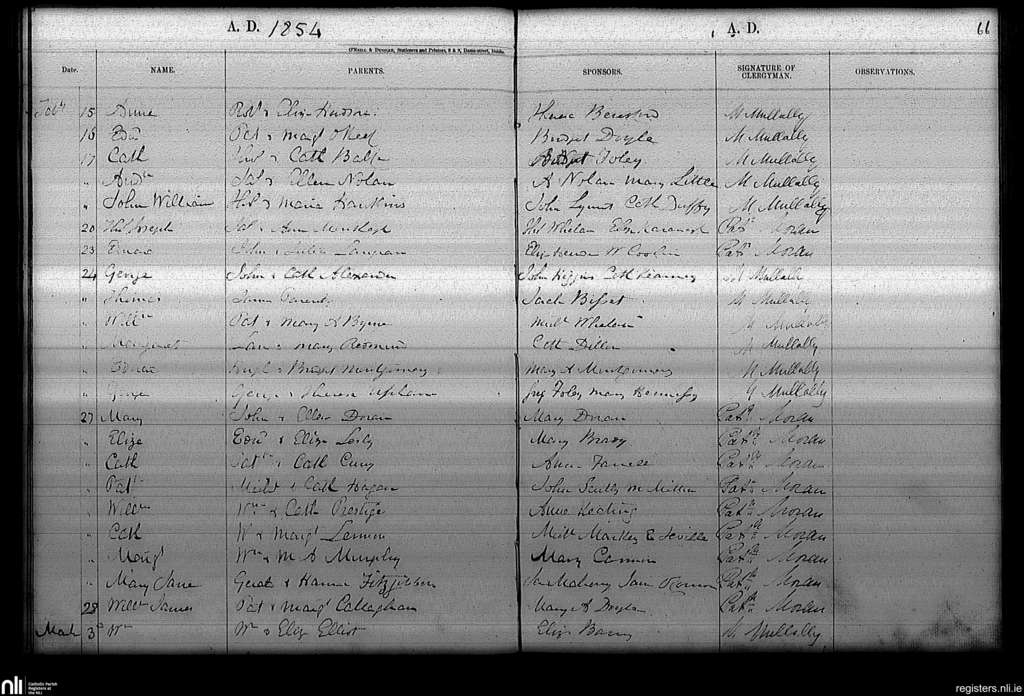 Haddington Road; County of Dublin; Archdiocese of Dublin. Baptisms, Feb. 1854 to Mar. 1854