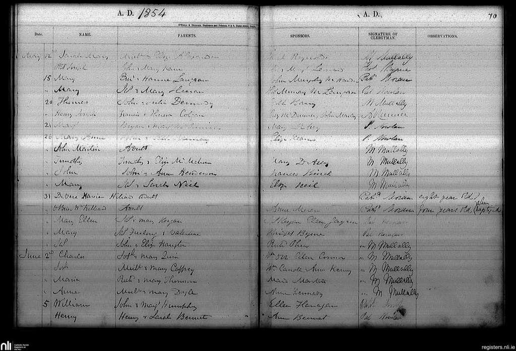 Haddington Road; County of Dublin; Archdiocese of Dublin. Baptisms, May 1854 to June 1854