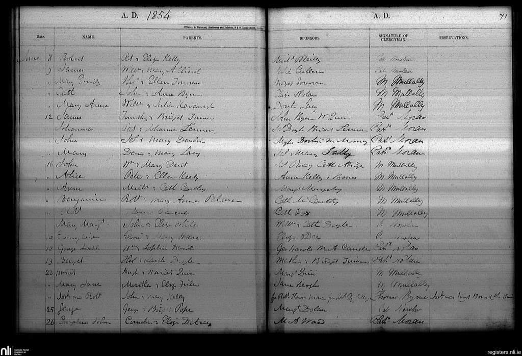 Haddington Road; County of Dublin; Archdiocese of Dublin. Baptisms, June 1854