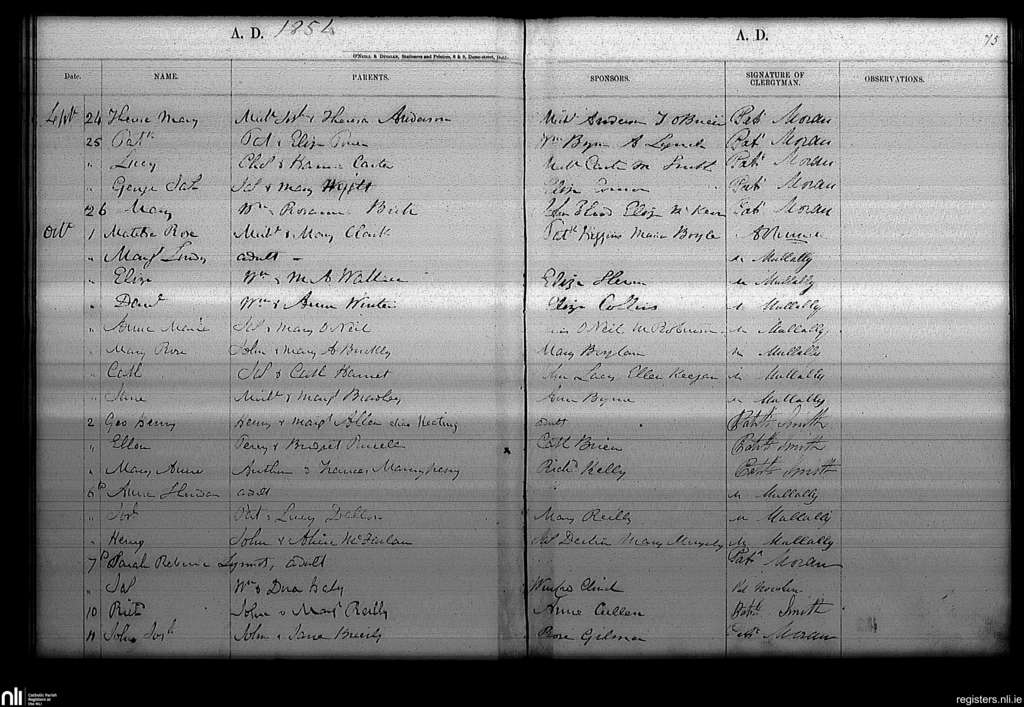 Haddington Road; County of Dublin; Archdiocese of Dublin. Baptisms, Sep. 1854 to Oct. 1854