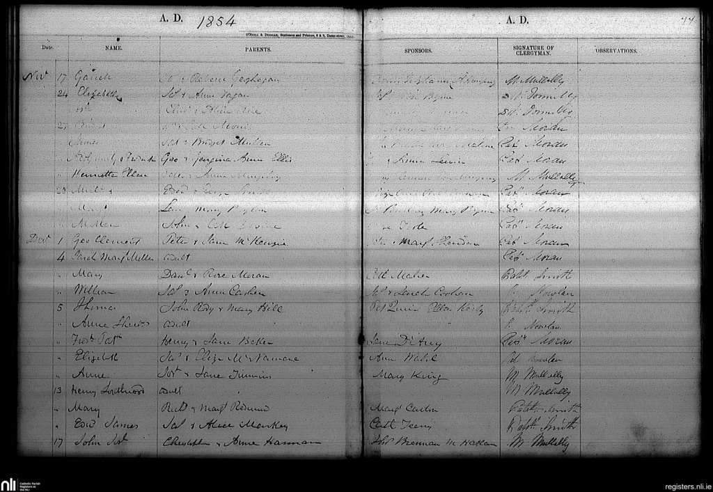 Haddington Road; County of Dublin; Archdiocese of Dublin. Baptisms, Nov. 1854 to Dec. 1854