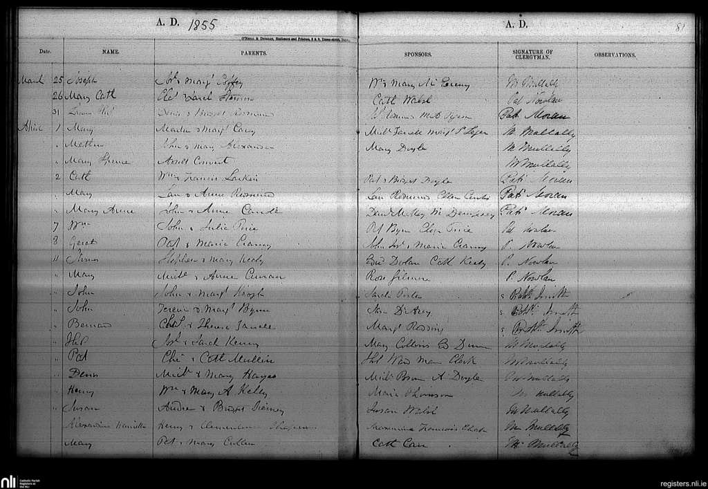 Haddington Road; County of Dublin; Archdiocese of Dublin. Baptisms, Mar. 1855 to Apr. 1855