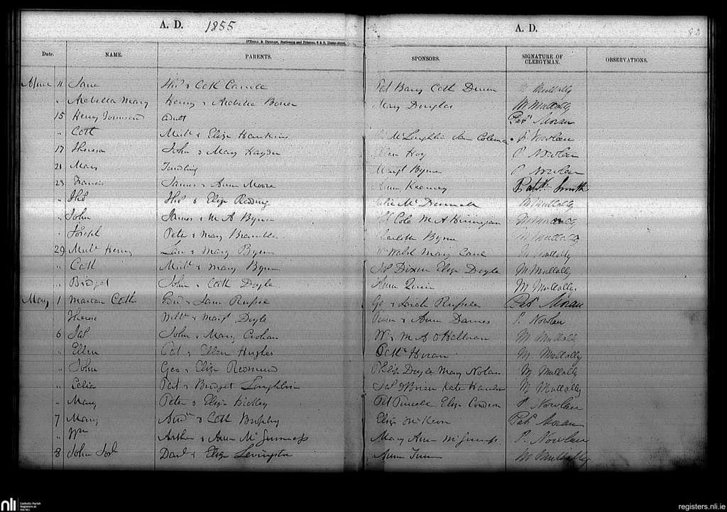 Haddington Road; County of Dublin; Archdiocese of Dublin. Baptisms, Apr. 1855 to May 1855
