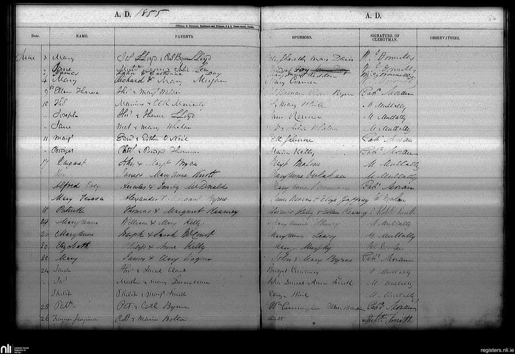 Haddington Road; County of Dublin; Archdiocese of Dublin. Baptisms, June 1855