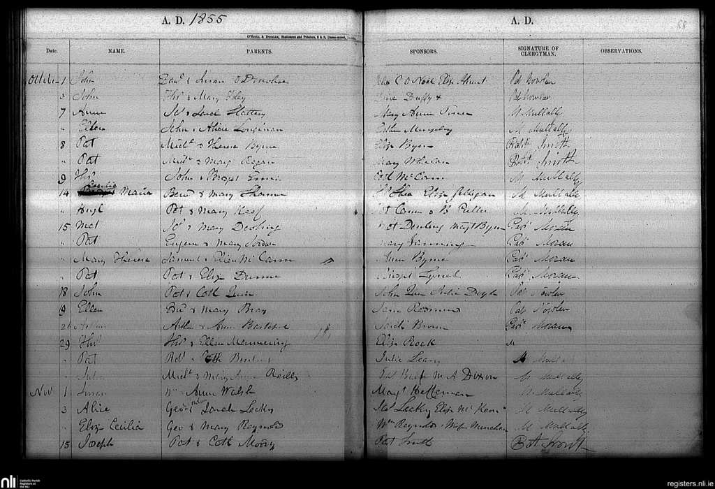 Haddington Road; County of Dublin; Archdiocese of Dublin. Baptisms, Oct. 1855 to Nov. 1855