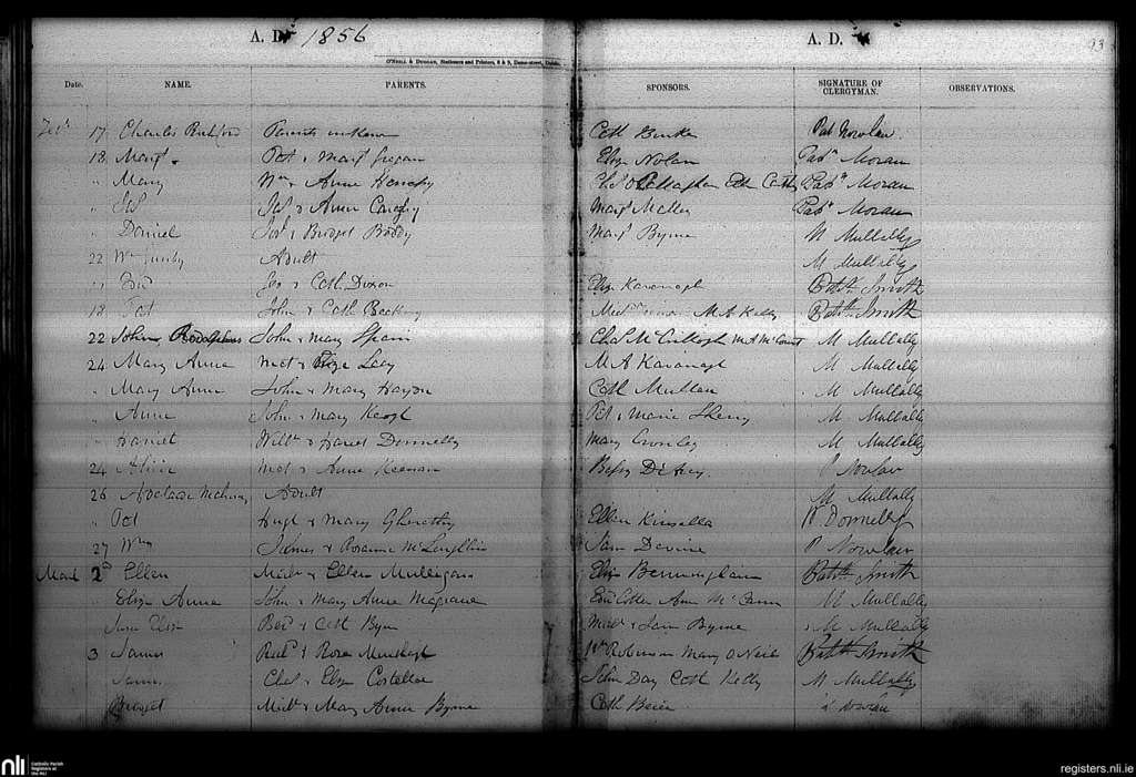 Haddington Road; County of Dublin; Archdiocese of Dublin. Baptisms, Feb. 1856 to Mar. 1856
