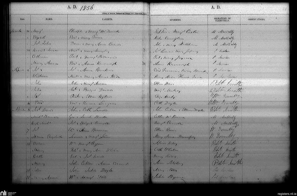 Haddington Road; County of Dublin; Archdiocese of Dublin. Baptisms, Mar. 1856 to Apr. 1856