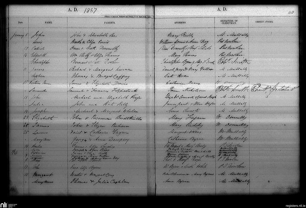 Haddington Road; County of Dublin; Archdiocese of Dublin. Baptisms, Jan. 1857 to Feb. 1857