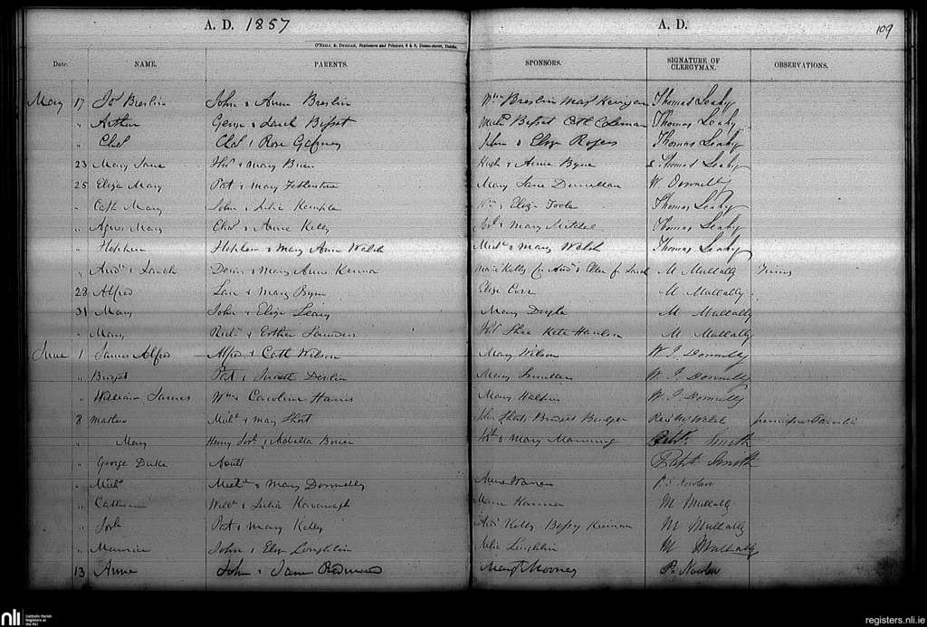 Haddington Road; County of Dublin; Archdiocese of Dublin. Baptisms, May 1857 to June 1857