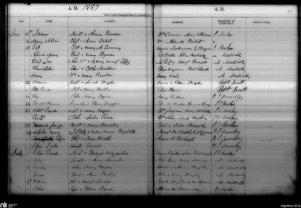Haddington Road; County of Dublin; Archdiocese of Dublin. Baptisms, June 1857 to July 1857