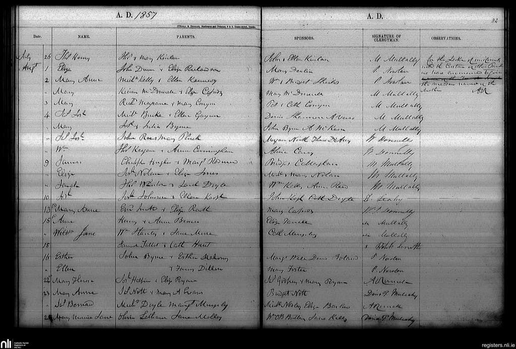 Haddington Road; County of Dublin; Archdiocese of Dublin. Baptisms, July 1857 to Aug. 1857
