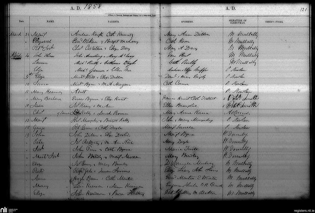Haddington Road; County of Dublin; Archdiocese of Dublin. Baptisms, Mar. 1858 to Apr. 1858