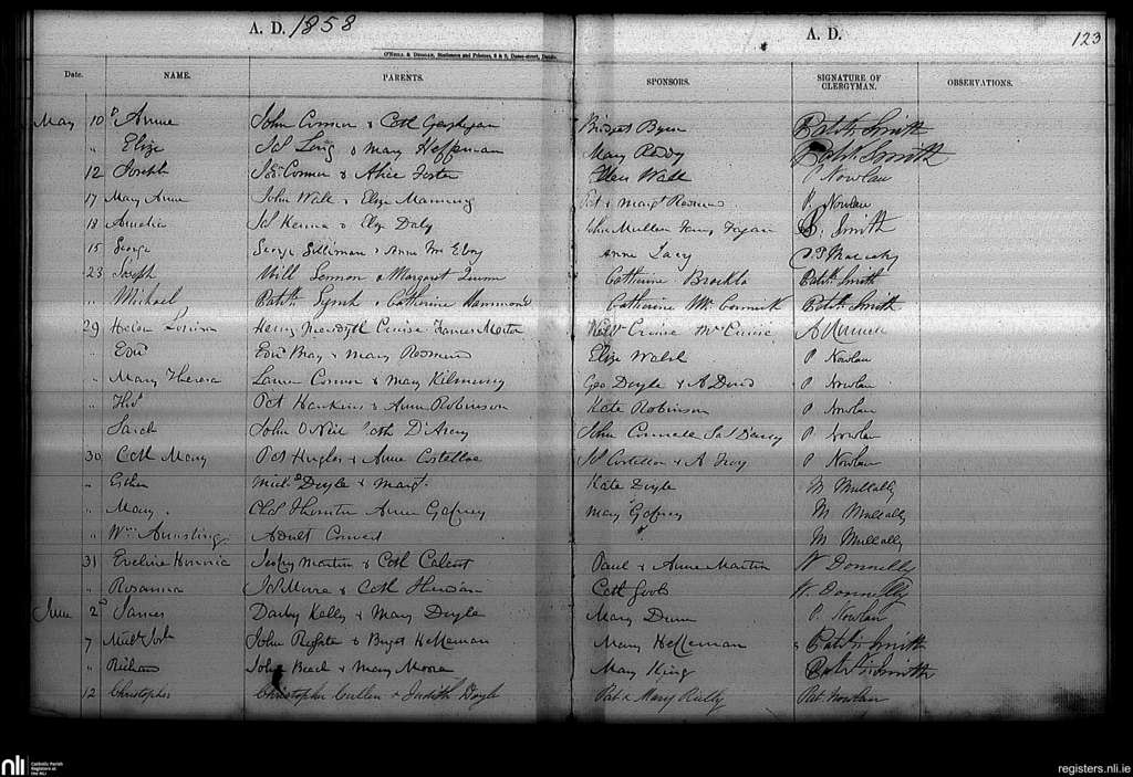 Haddington Road; County of Dublin; Archdiocese of Dublin. Baptisms, May 1858 to June 1858