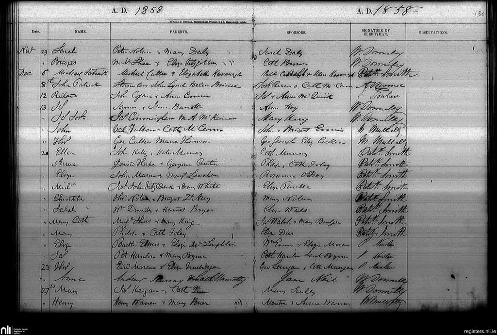 Haddington Road; County of Dublin; Archdiocese of Dublin. Baptisms, Nov. 1858 to Dec. 1858