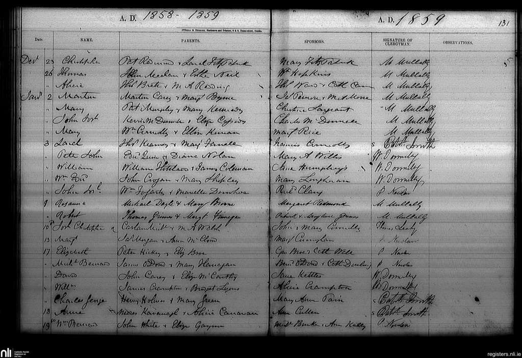 Haddington Road; County of Dublin; Archdiocese of Dublin. Baptisms, Dec. 1858 to Jan. 1859