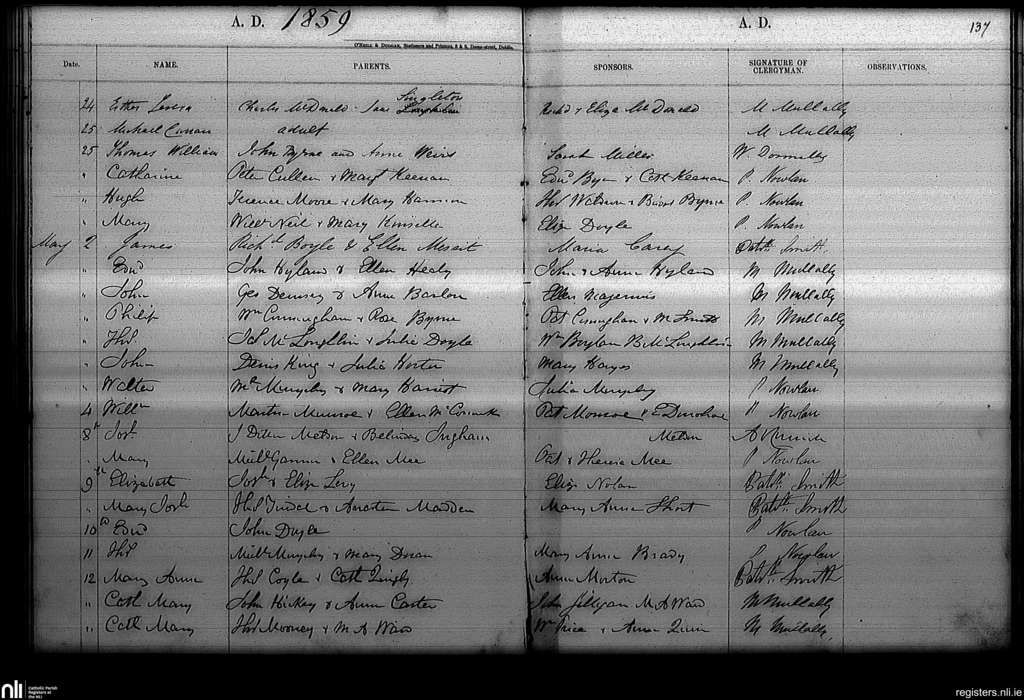 Haddington Road; County of Dublin; Archdiocese of Dublin. Baptisms, Apr. 1859 to May 1859