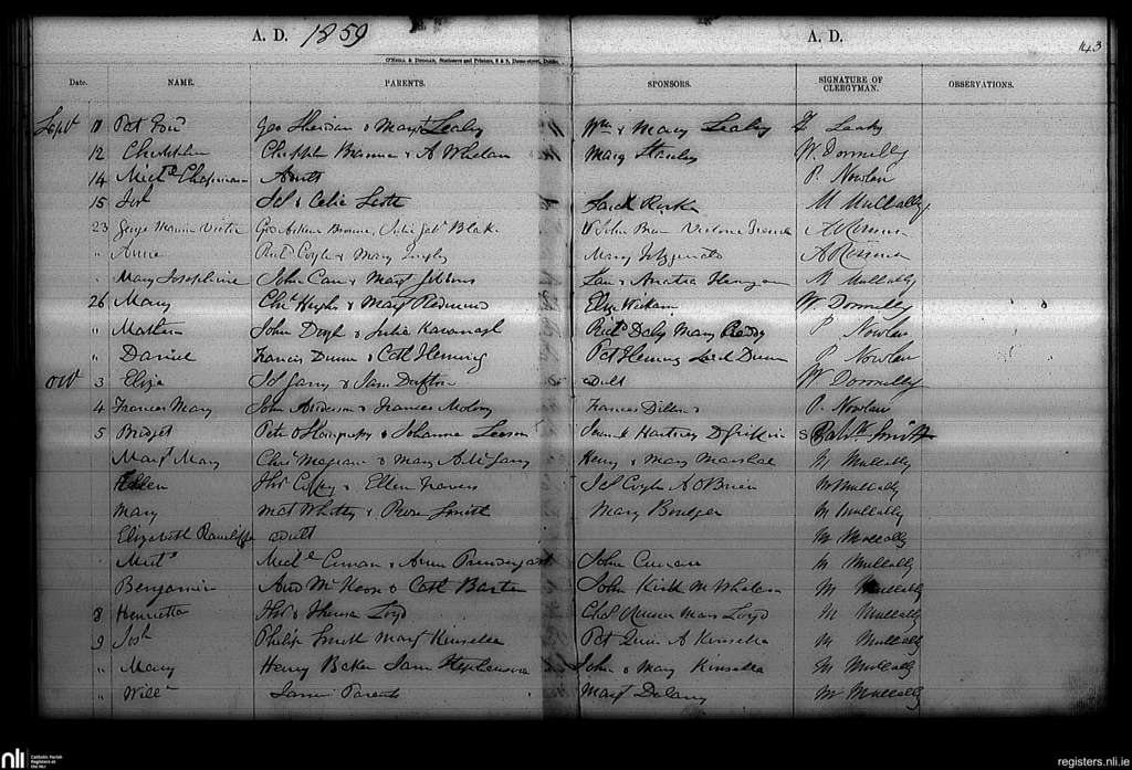 Haddington Road; County of Dublin; Archdiocese of Dublin. Baptisms, Sep. 1859 to Oct. 1859