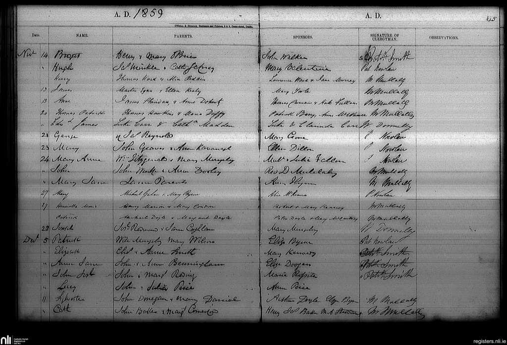Haddington Road; County of Dublin; Archdiocese of Dublin. Baptisms, Nov. 1859 to Dec. 1859
