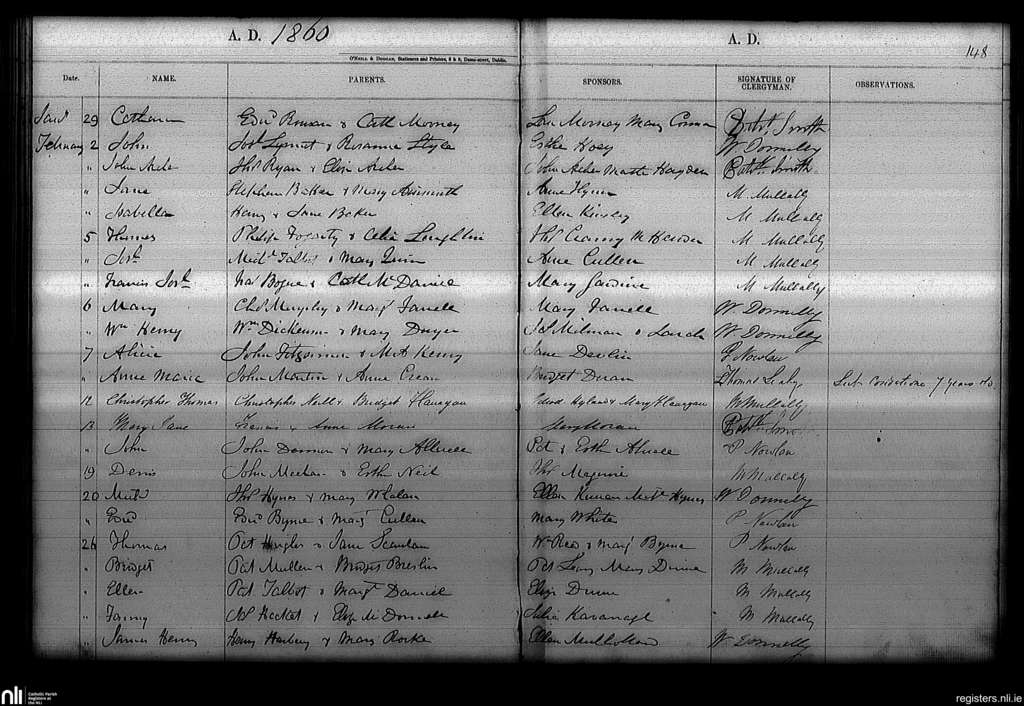 Haddington Road; County of Dublin; Archdiocese of Dublin. Baptisms, Jan. 1860 to Feb. 1860