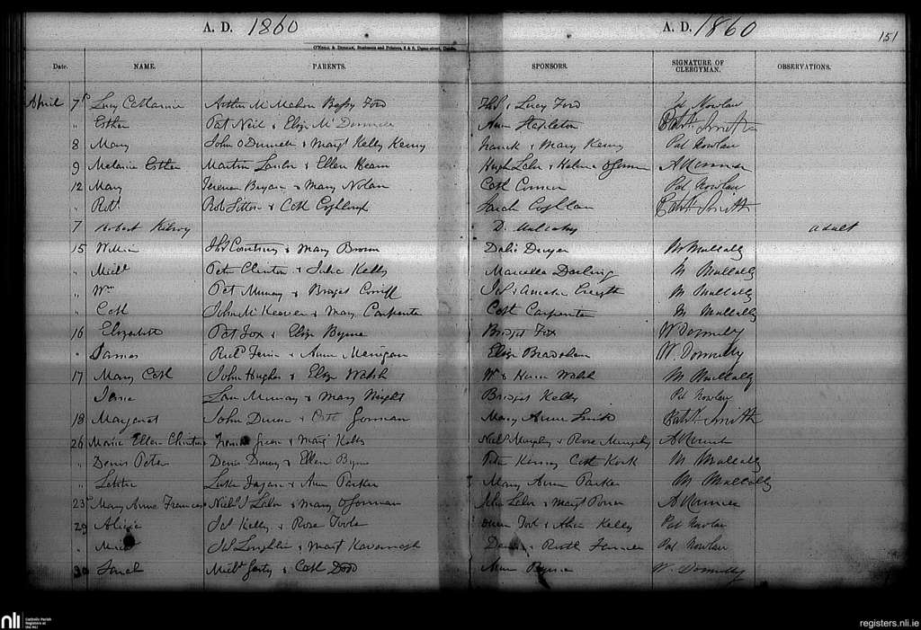 Haddington Road; County of Dublin; Archdiocese of Dublin. Baptisms, Apr. 1860