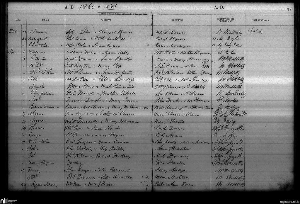 Haddington Road; County of Dublin; Archdiocese of Dublin. Baptisms, Dec. 1860 to Jan. 1861