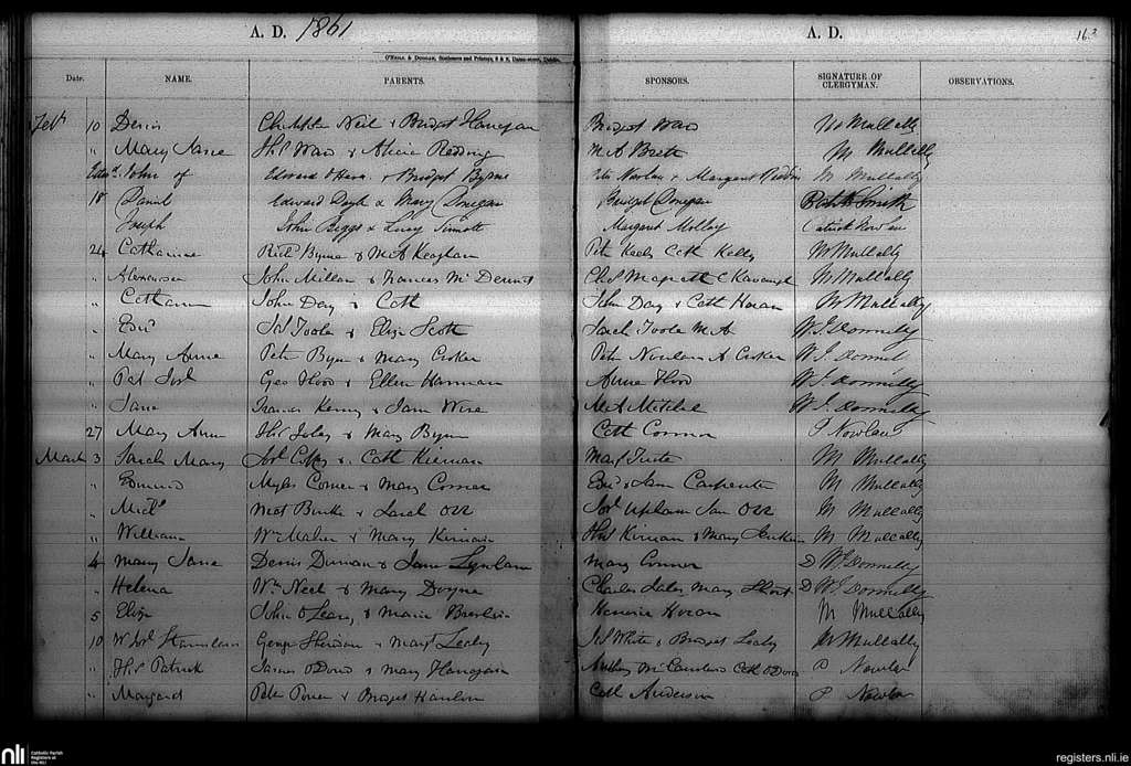 Haddington Road; County of Dublin; Archdiocese of Dublin. Baptisms, Feb. 1861 to Mar. 1861