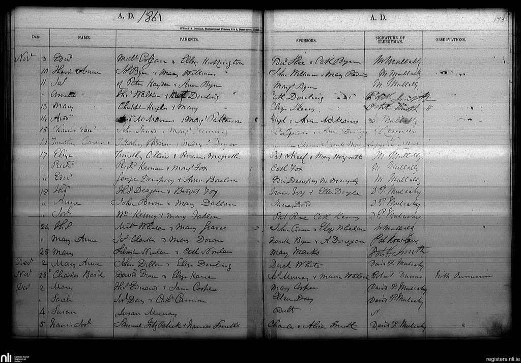 Haddington Road; County of Dublin; Archdiocese of Dublin. Baptisms, Nov. 1861 to Dec. 1861