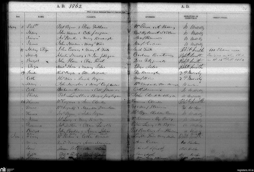 Haddington Road; County of Dublin; Archdiocese of Dublin. Baptisms, May 1862 to June 1862