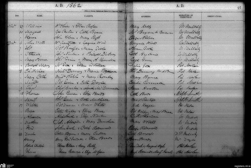 Haddington Road; County of Dublin; Archdiocese of Dublin. Baptisms, Nov. 1862 to Dec. 1862